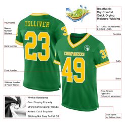 Custom Grass Green Gold-White Mesh Authentic Throwback Football Jersey