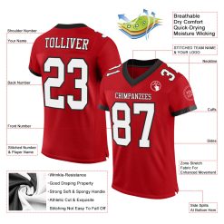 Custom Red White-Black Mesh Authentic Throwback Football Jersey