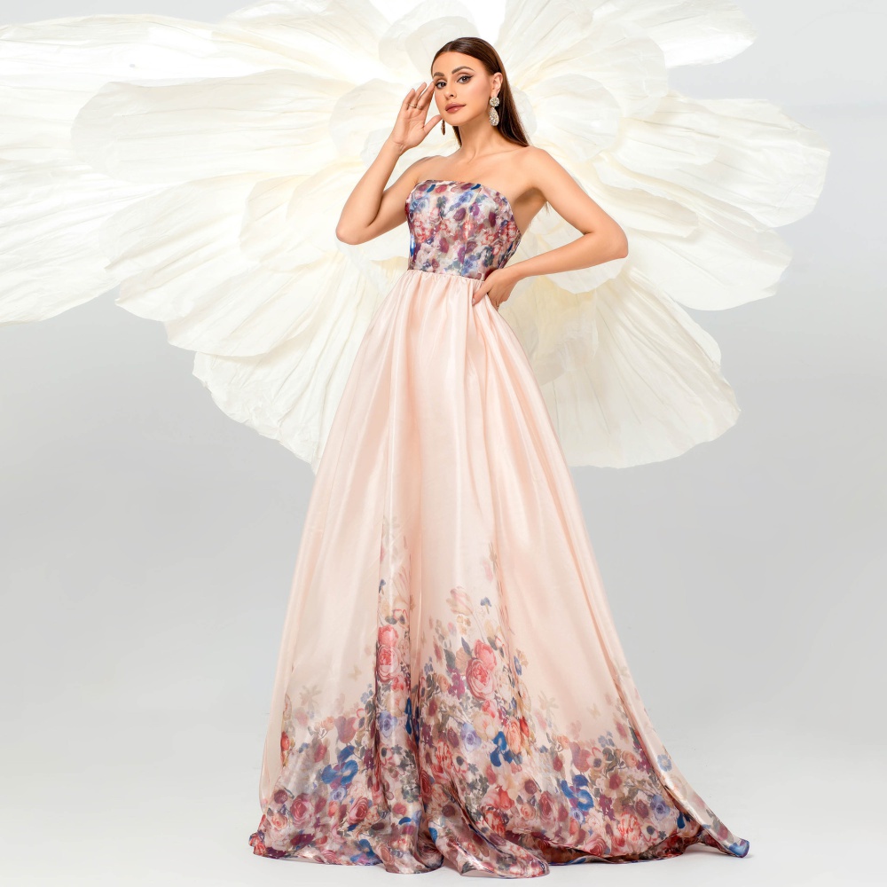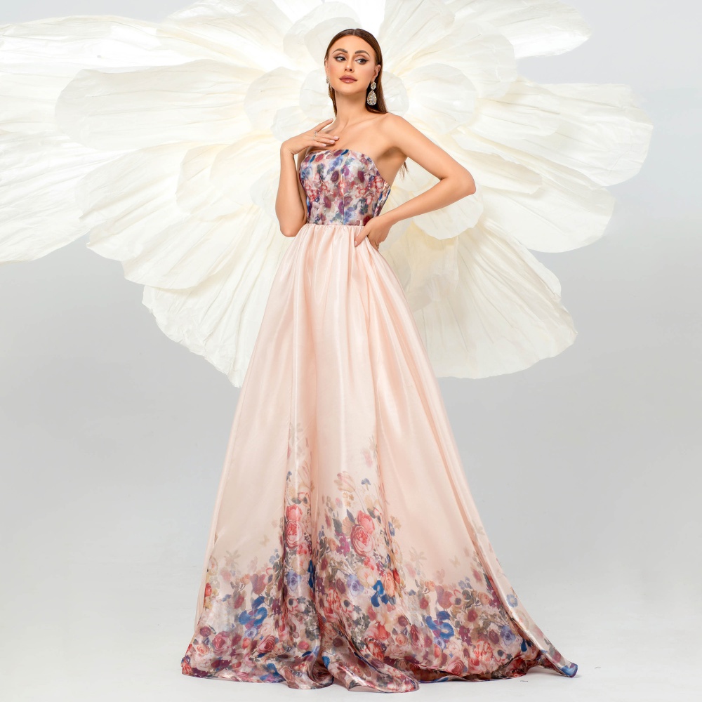Preside waist straps banquet V-neck evening dress