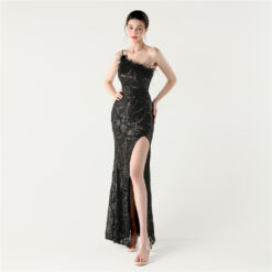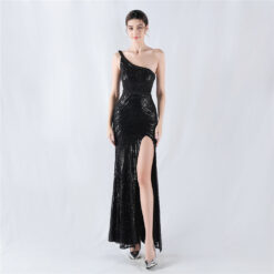 Beading shoulder high split sequins evening dress