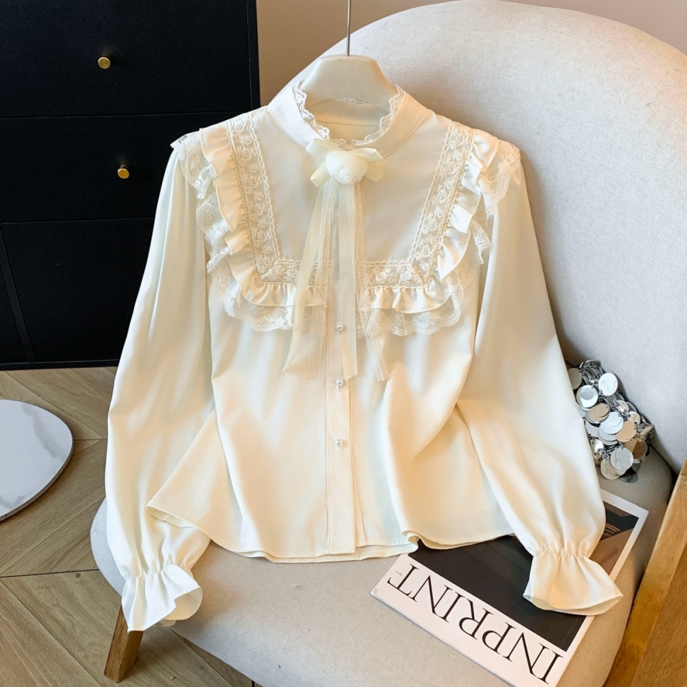 Cstand collar unique elegant light luxury lace satin shirt