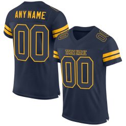 Custom Navy Navy-Gold Mesh Authentic Football Jersey $27.99