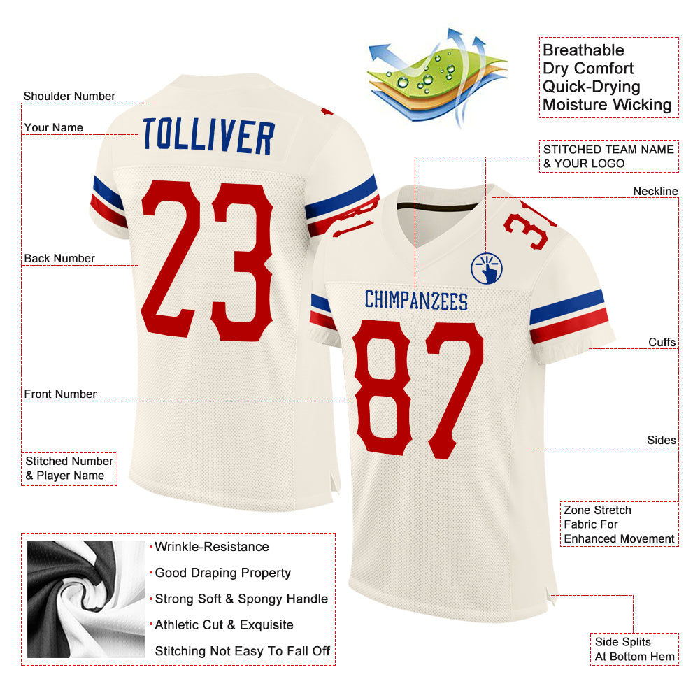 Be the first to review “Custom Cream Red-Royal Mesh Authentic Football Jersey” Cancel reply