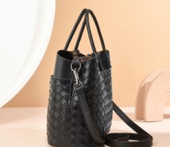 High capacity weave buff commuting shoulder handbag for women