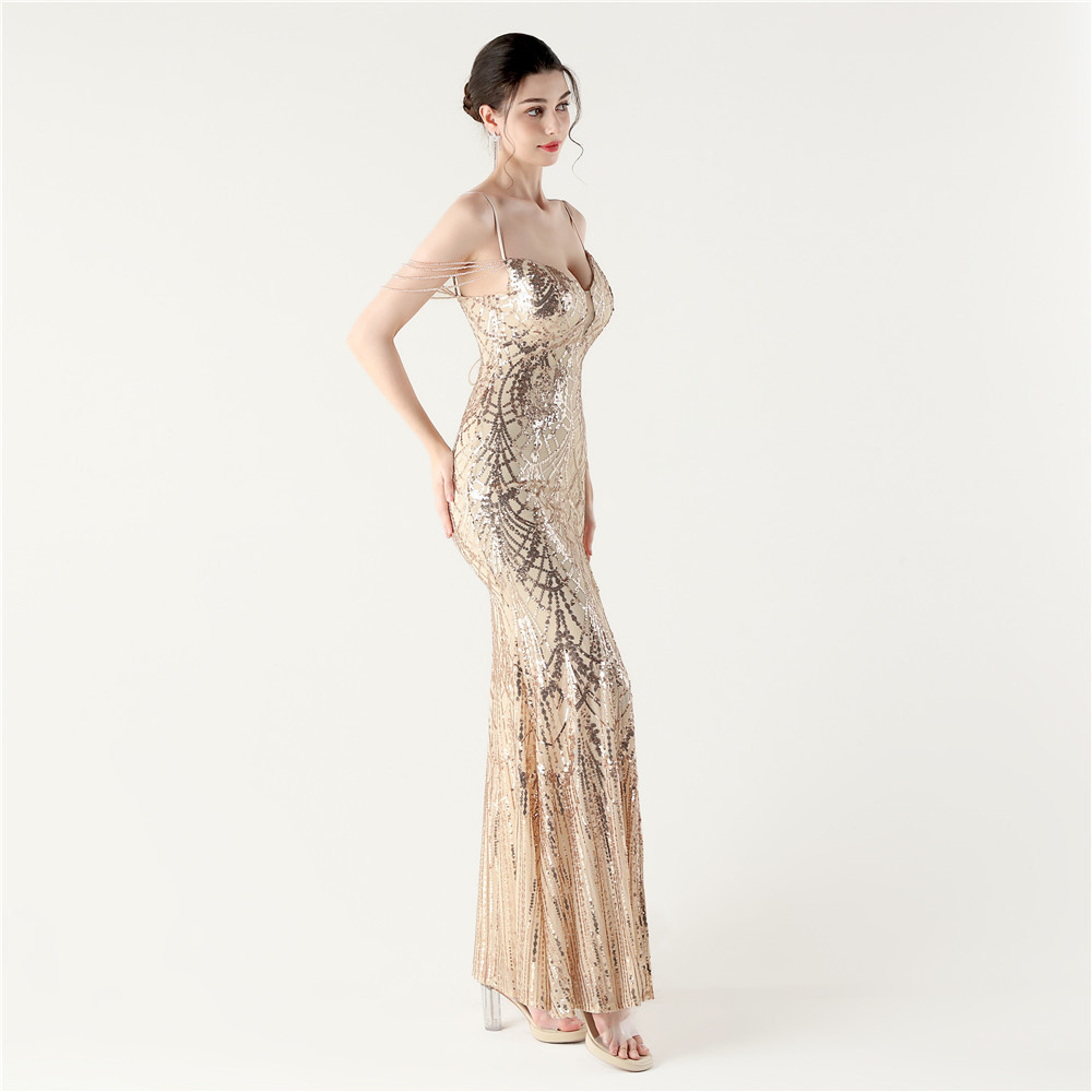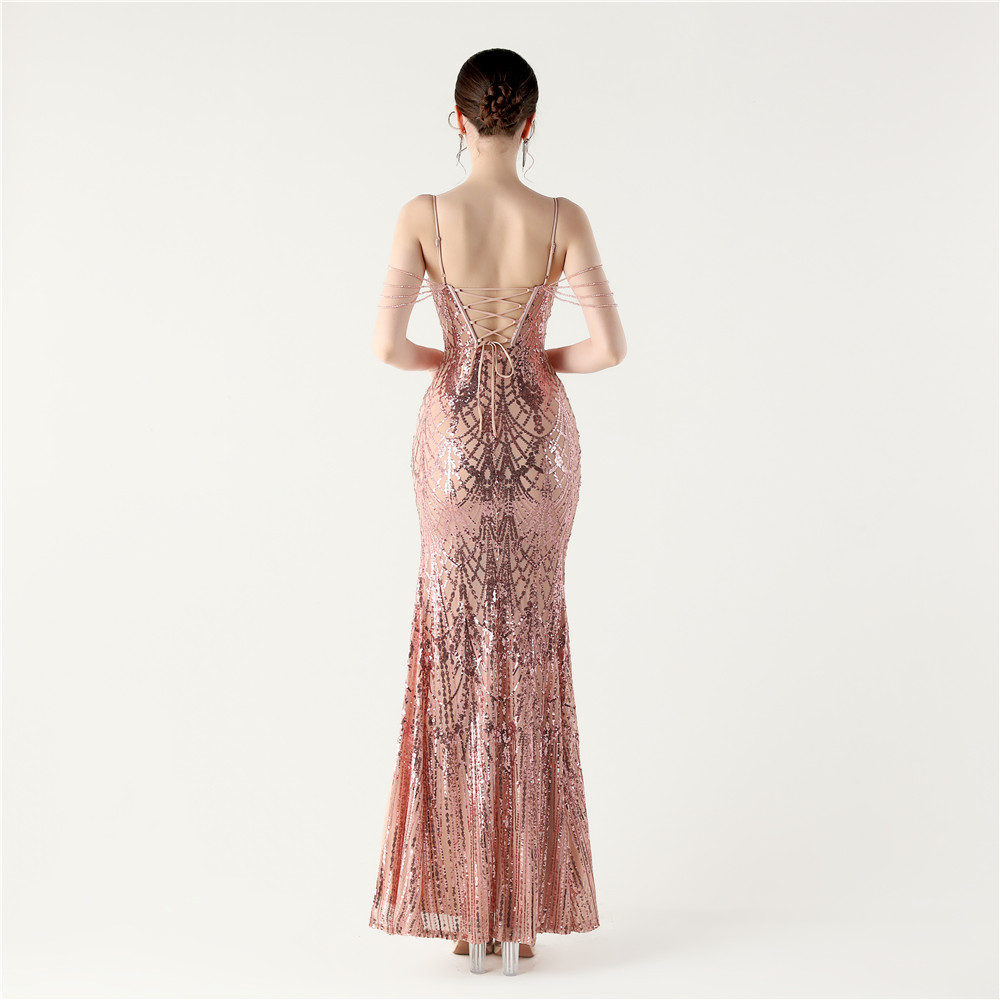 Tying sequins evening dress
