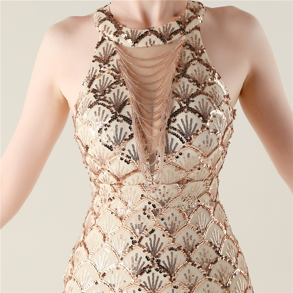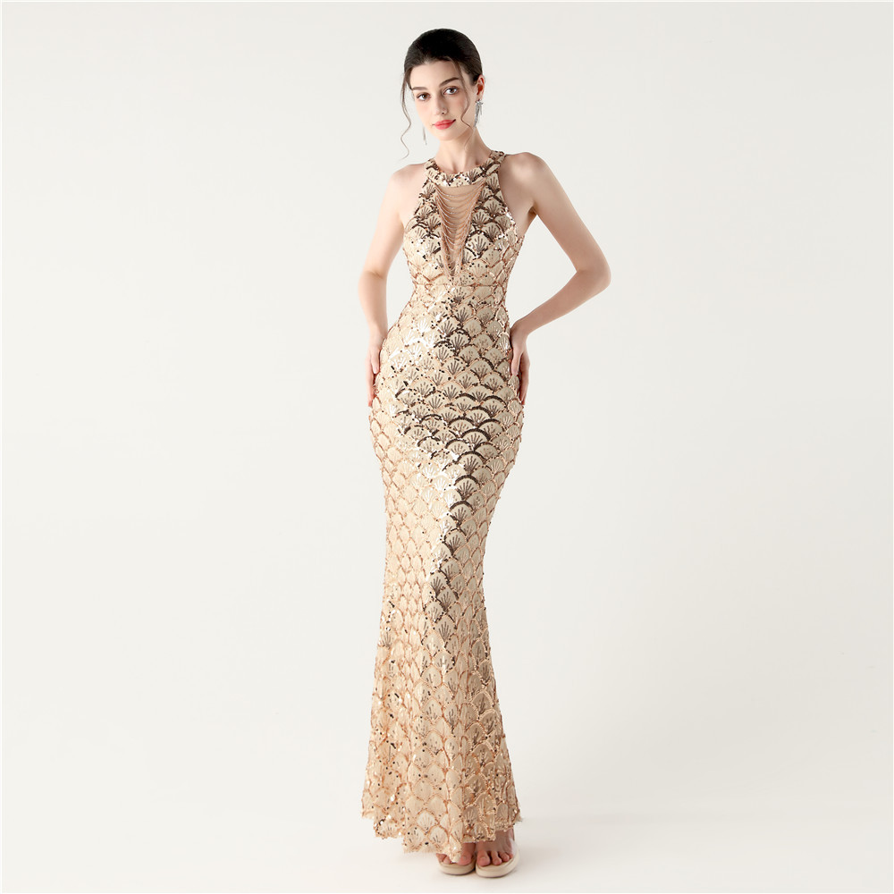 Tying sequins evening dress