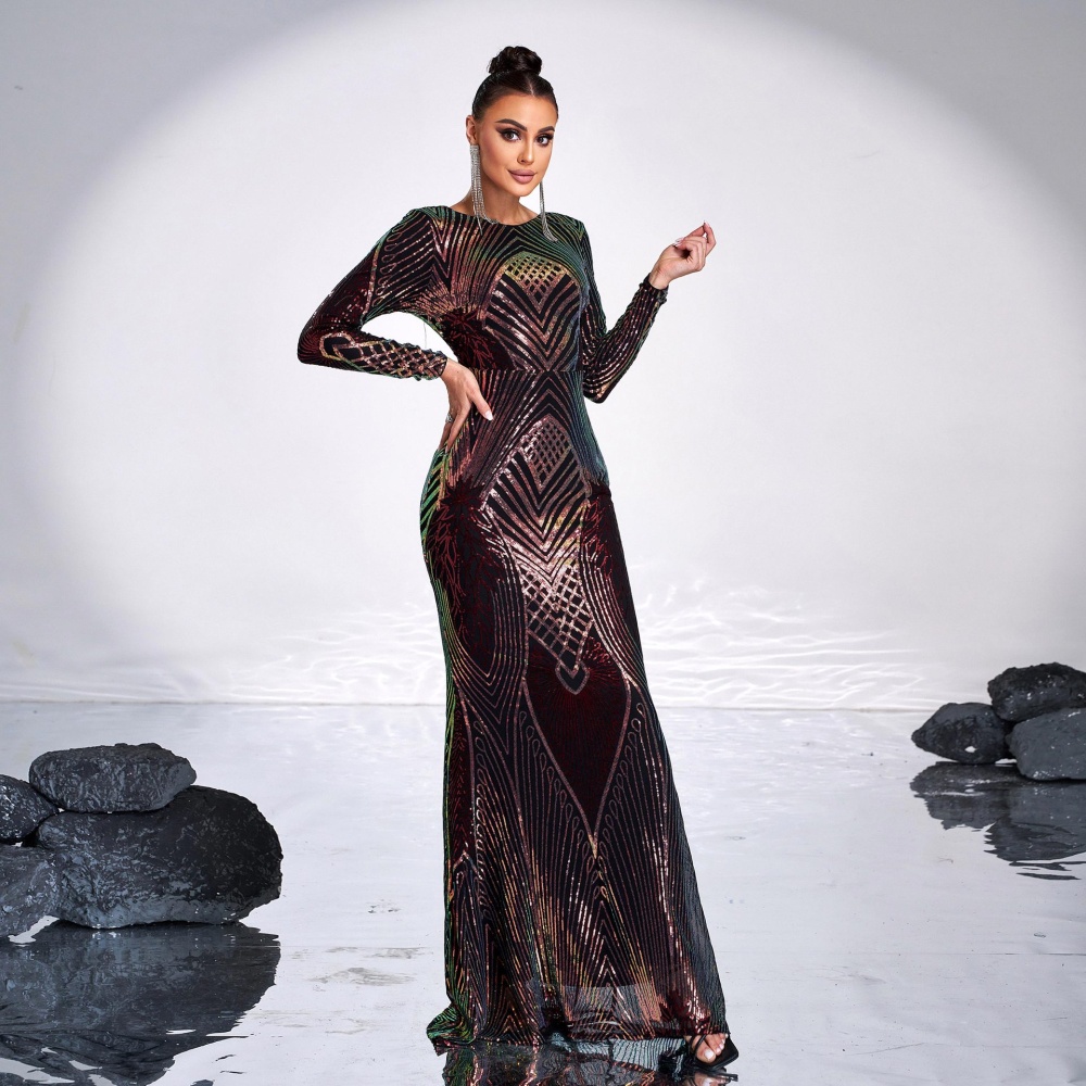 Temperament banquet dress round neck evening dress for women