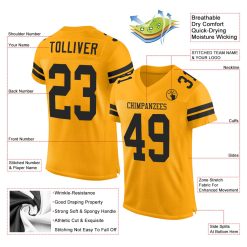 Custom Gold Black-White Mesh Authentic Football Jersey