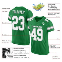Custom Grass Green White-Gray Mesh Authentic Football Jersey