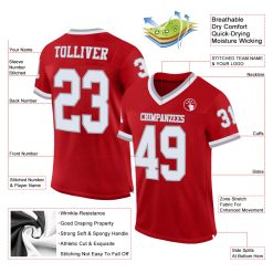 Custom Red White-Gray Mesh Authentic Football Jersey