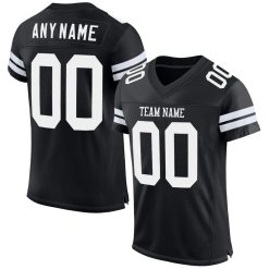 Custom Black White-Orange Mesh Authentic Football Jersey