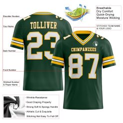 Custom Green White-Gold Mesh Authentic Football Jersey