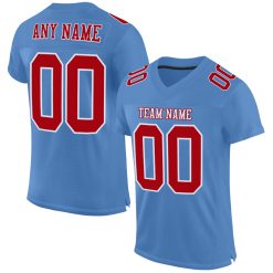Custom Light Blue Red-White Mesh Authentic Football Jersey