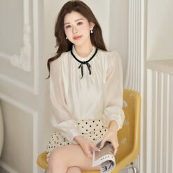 Temperament cstand collar tops fungus bow shirt for women