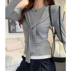 Splice autumn tops Pseudo-two T-shirt for women