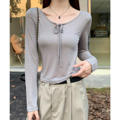 Slim sloping shoulder bottoming shirt American style tops for women