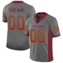 Custom Gray Burgundy-Gold Mesh Drift Fashion Football Jersey $24.99