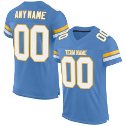 Custom Powder Blue White-Gold Mesh Authentic Football Jersey $27.99