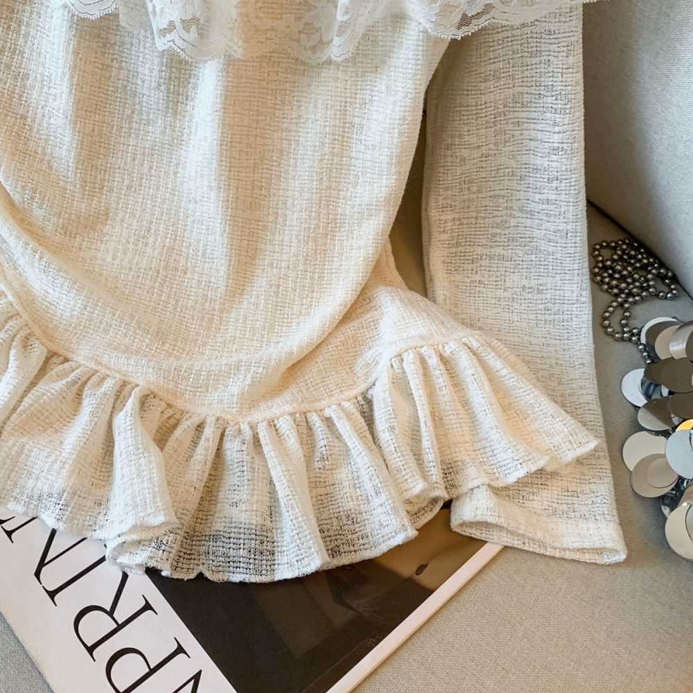 Brown bow sweater lace bottoming shirt for women