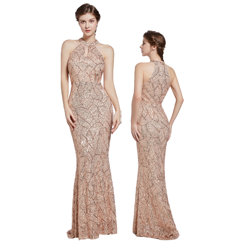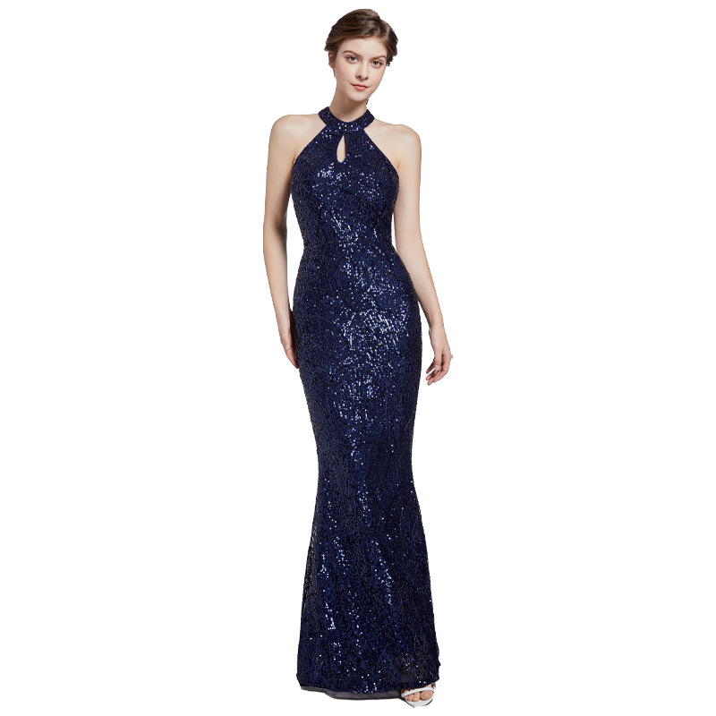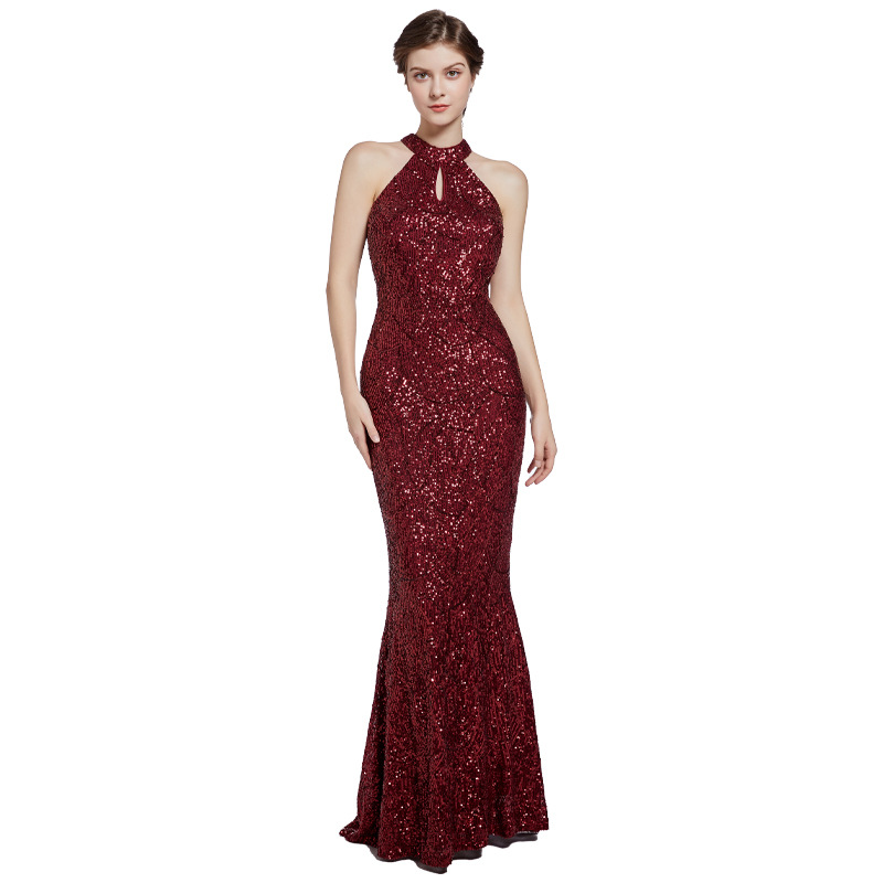 Sequins mermaid high collar slim banquet evening dress