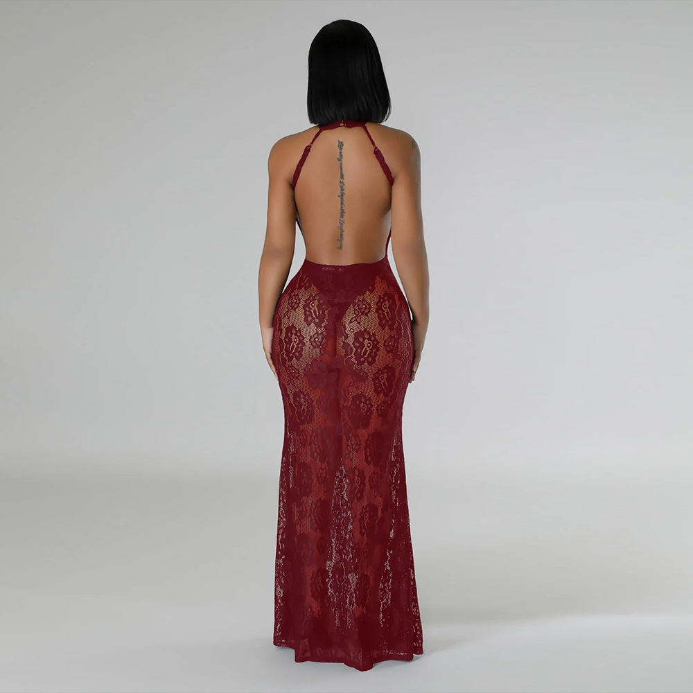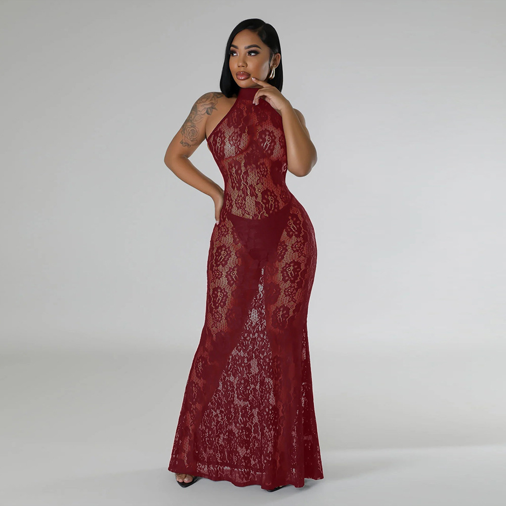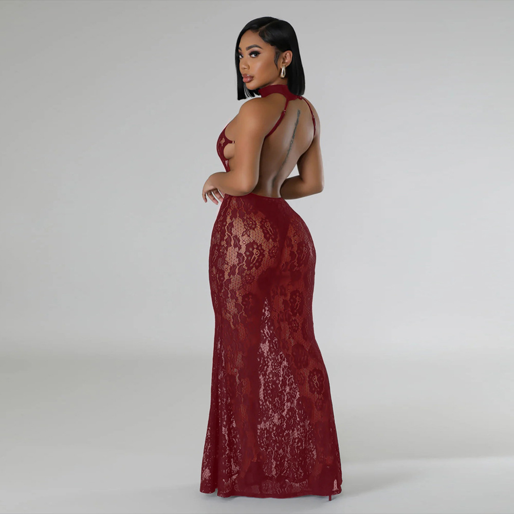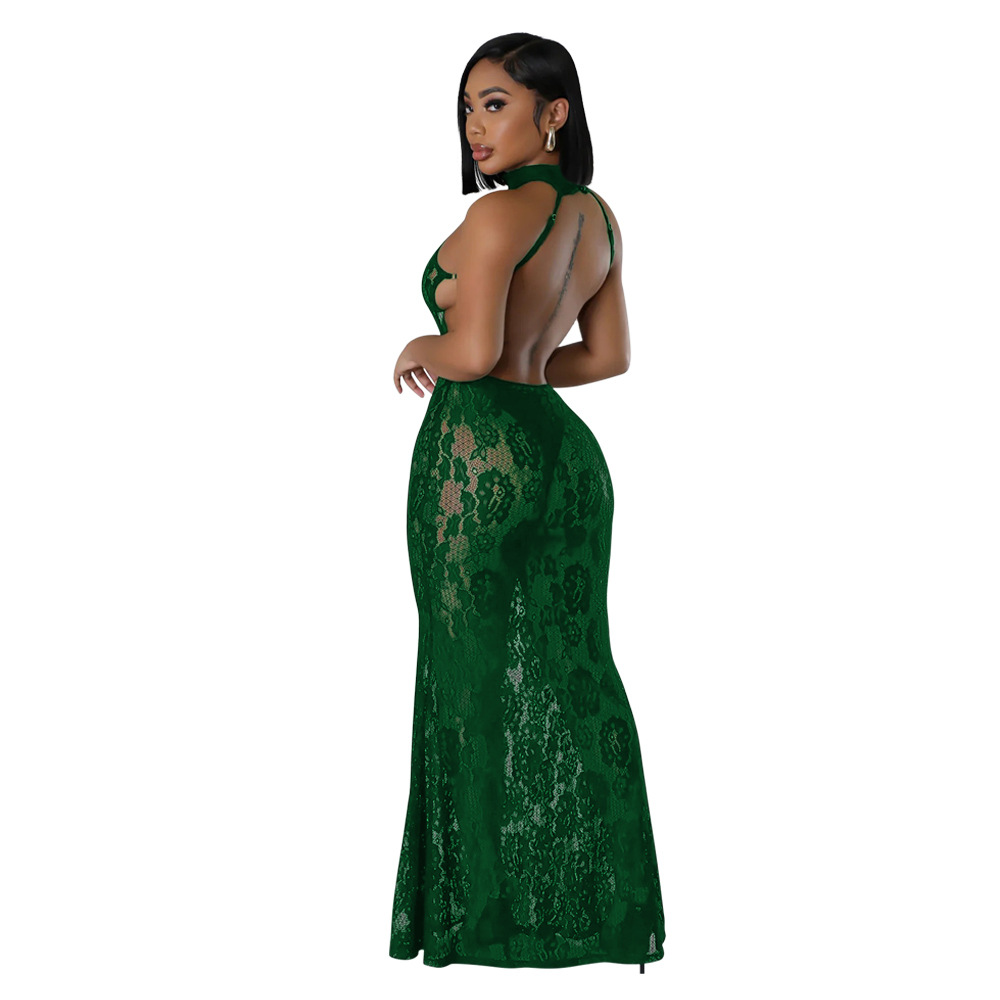 Nightclub fashion halter package hip slim lace sexy dress
