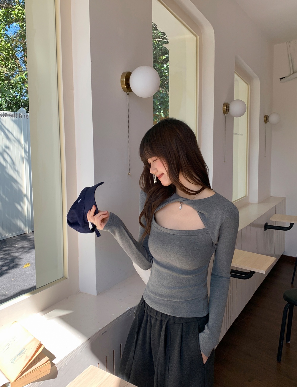 Slim gray T-shirt spicegirl bottoming shirt for women